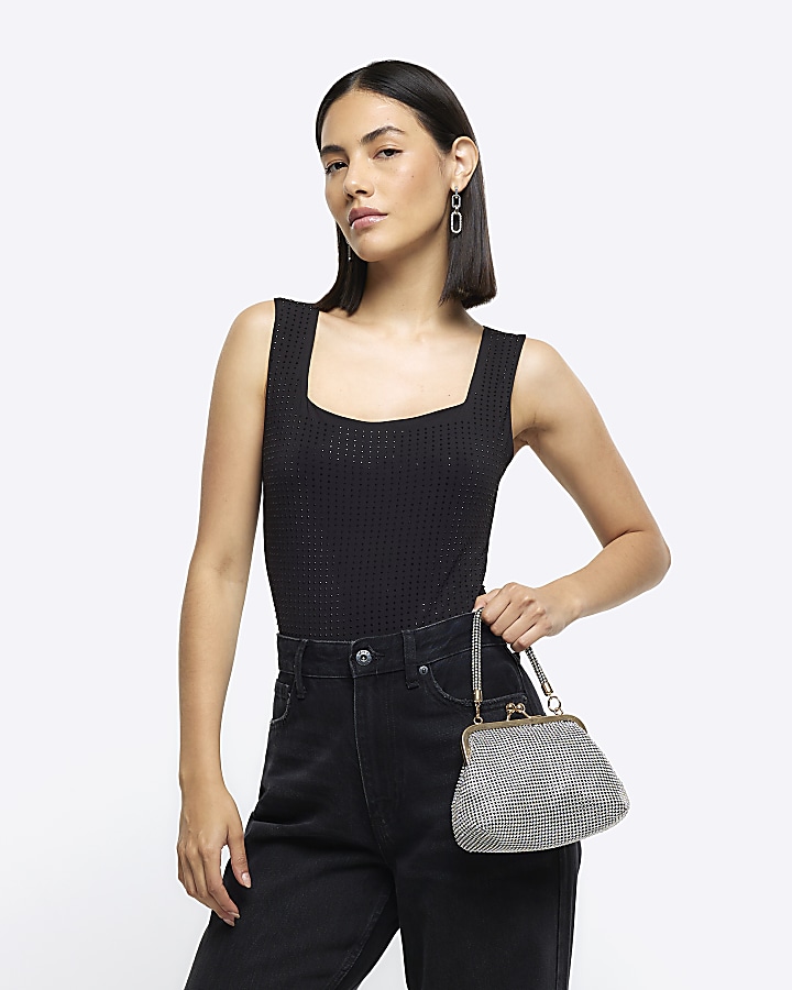 River Island rhinestone trim cupped slip dress in black Very well made.