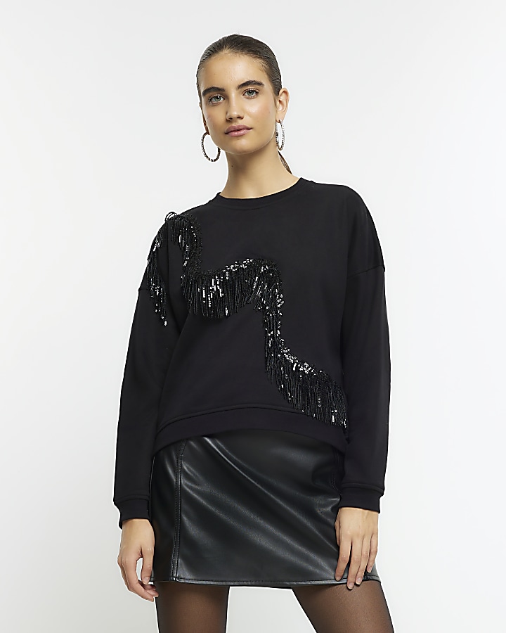 Black diamante fringe sweatshirt Very well made.