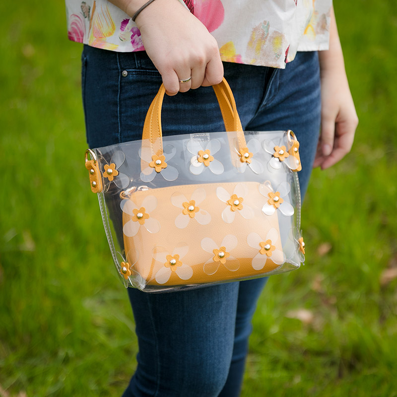 Mustard and Clear Floral Bag Very well made.